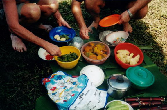 Disclaimer: We pride ourselves on the quality and variety of the meals we provide. Of course there are many limitations, such as no refrigeration and only being able to carry what essential ingredients we can on our backs and the availability of fresh game, fish, fruit and vegetables. These factors all play a big part in what we prepare for your dinner each day.